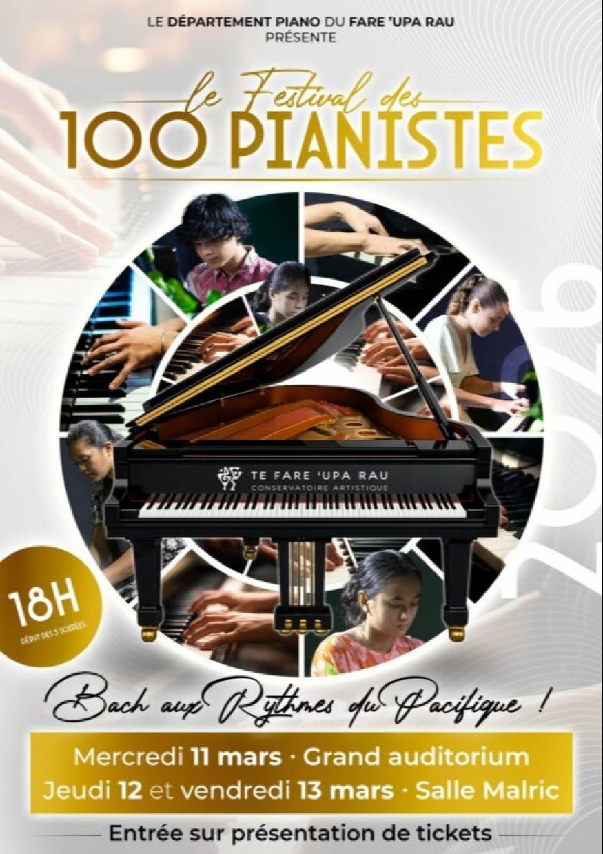 Du mercredi 11 au vendredi 13 mars 2026, le département piano lance son grand "Festival des 100 pianistes". Cette année, le thème va te surprendre : « Bach aux rythmes du Pacifique ». C'est le spot parfait pour découvrir une fusion inédite entre la rigueur du classique et la douceur de nos îles.