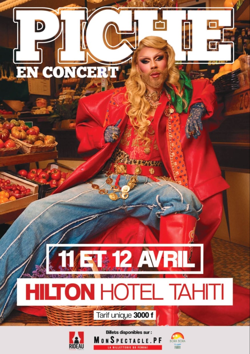 Le samedi 11 avril 2026, le Rideau Rouge Tahiti présente un show qui s'annonce déjà comme l'un des plus audacieux de l'année : PICHE en concert au Hilton Hotel Tahiti. Révélée par la saison 2 de Drag Race France, cette artiste complète brise tous les codes avec un univers singulier mêlant chant, rap et une culture gitano-algérienne fièrement revendiquée.