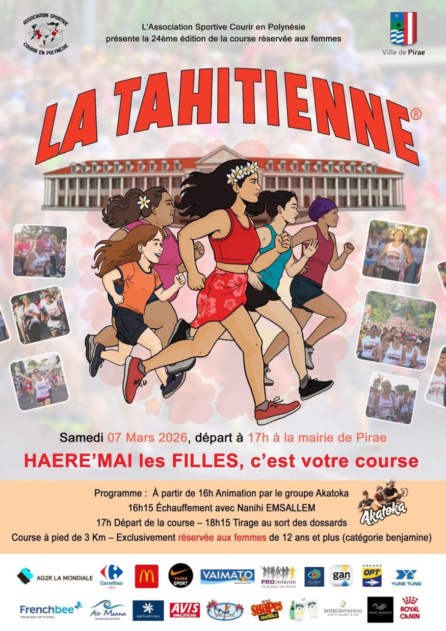 L'événement propose un parcours d'environ 3 km ouvert à toutes les femmes. Tu peux choisir de courir ou marcher selon ton niveau, dans un esprit convivial typique du fenua. Les inscriptions se font chez Vaima Sport du 23 février au 6 mars (8h30-16h30 en semaine, fermé samedi), jusqu'à 3 500 participantes maximum ou épuisement des dossards. Tarif unique : 1 500 XPF.