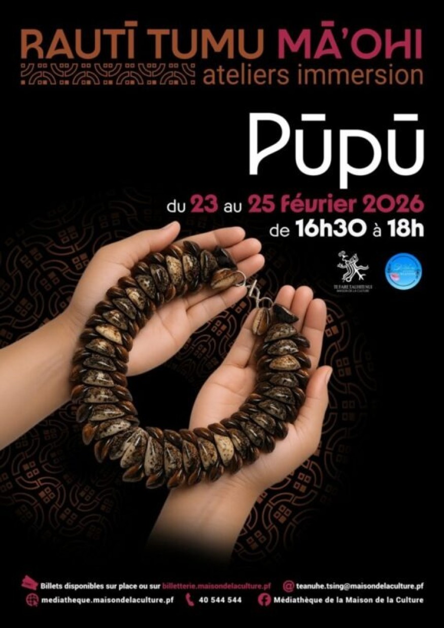 Du lundi 23 au mercredi 25 février 2026, Te Fare Tauhiti Nui accueille trois soirées d'immersion culturelle. Les participants apprennent les gestes traditionnels du pūpū.
