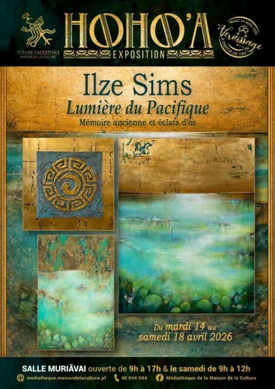 Du mardi 14 au samedi 18 avril 2026, la Salle Muriāvai de Te Fare Tauhiti Nui se transforme en un sanctuaire de lumière pour accueillir l'exposition « Lumières du Pacifique – Mémoire ancienne et éclats d’or ». L'artiste Ilze Sims, qui entretient une relation spirituelle avec la Polynésie depuis près de trente ans, revient nous présenter ses œuvres vibrantes où la tradition rencontre le luxe contemporain.