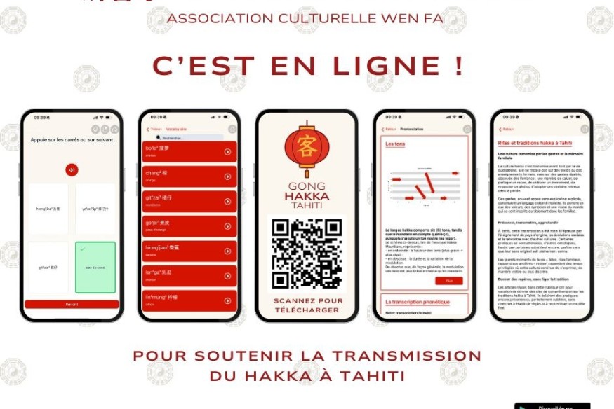 Créée en 1976 pour promouvoir la culture chinoise au fenua, elle lance dès le 17 février l’app gratuite « Gong Hakka Tahiti ». Cet outil numérique cible primo-apprenants et familles renouant avec leurs racines sino-polynésiennes.
